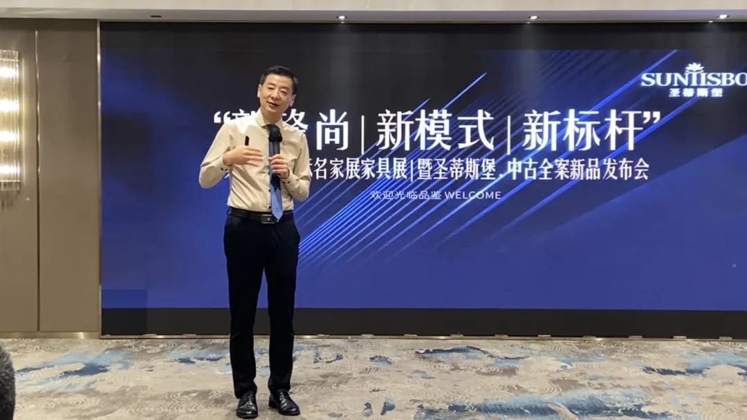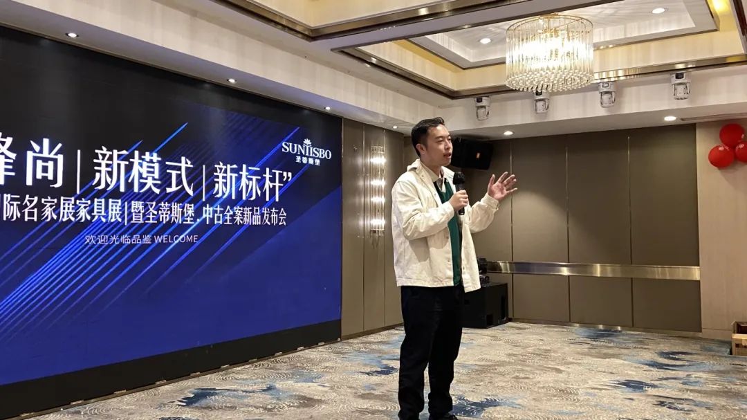接下来,东升国际工业营销部副经理吴天喜先生为我们重磅揭晓了2025春季新品中古全案系列和新古典全案升级新品,他从选材、设计、风格、工艺等方面进行了全面的讲解,并提到此次中古新品的全案模式是以更具设计感的创新方式,给予消费者整体性的体验感升级,助力大家在激烈的市场竞争中,突显差异化的优势,实现业绩的飞跃式增长。